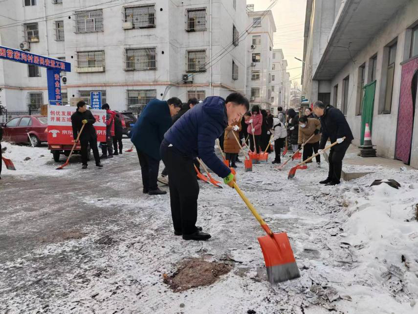 活动中,志愿者们不畏严寒,克服低温路滑等困难,手持铁锹,铲除积雪,清扫路面,全力清除着道路上的积雪和暗冰。一个个忙碌的身影在皑皑白雪中构成了一道靓丽的风景线。经过大家的努力,相互配合、通力协作,道路和小区积雪情况得到极大缓解,被冰雪覆盖道路恢复畅通,以实际行动切实保障了群众和车辆的出行安全,同时也彰显了我局干部职工的社会责任感和为民情怀。