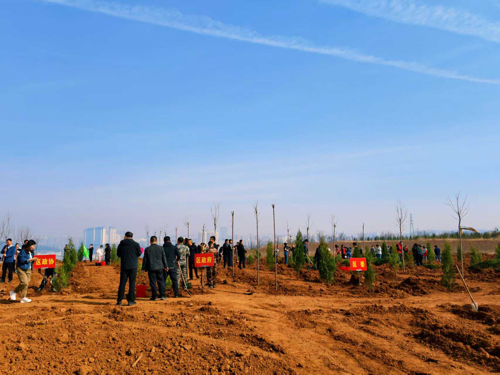 植树现场人头攒动,一派热火朝天的劳动景象。植树现场,区领导与广大党员干部群众分工协作、配合默契,一个个干劲十足。大家挥锹挖坑、扶苗填土、踩实浇水,每一道工序都认真细致、有条不紊。经过齐心协力劳作,一棵棵楸树、白蜡、侧柏等树苗错落有致、迎风挺立,为春日的大地披上了崭新的绿装,焕发出勃勃生机。