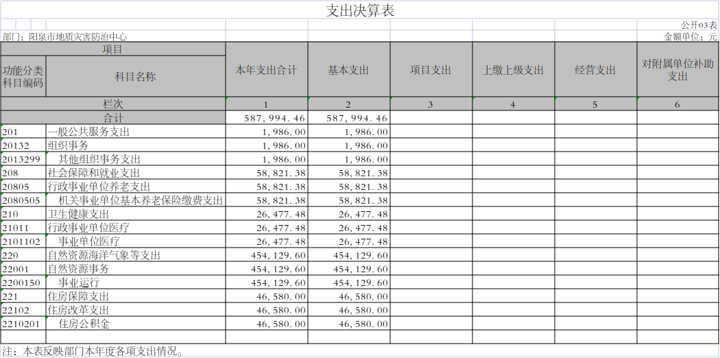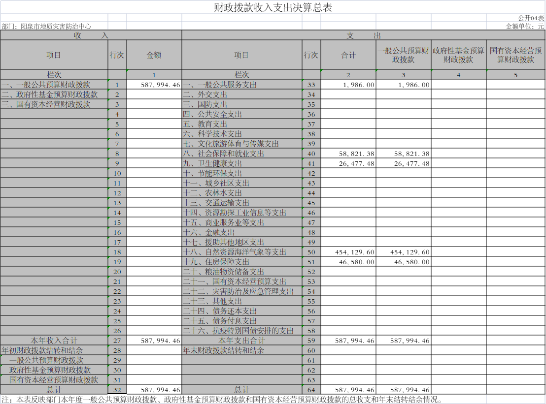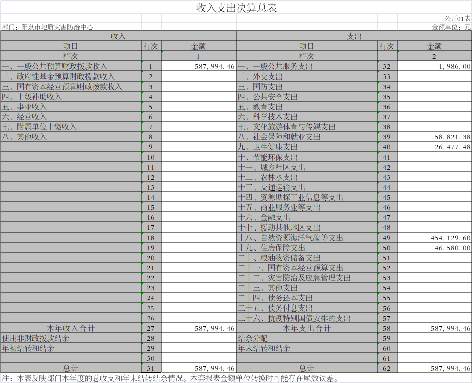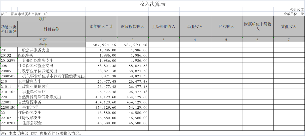 阳泉市地质灾害防治中心2021年度决算信息公开