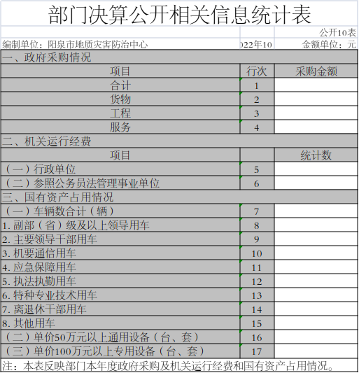 十、 部门决算公开相关信息统计表