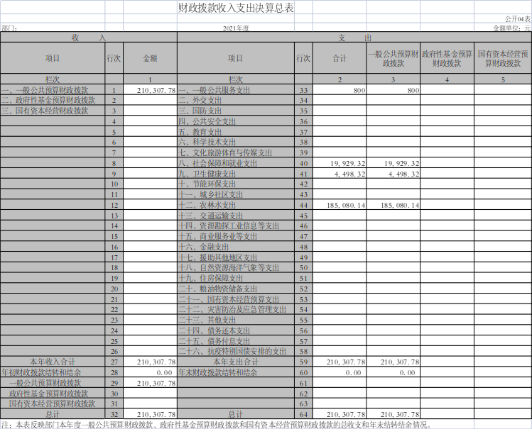 2021年度财政拨款收入总计21.030778万元、支出总计21.030778万元。与2020年相比,财政拨款收入总计减少0万元,下降0%,财政拨款支出总计减少0万元,下降0%。主要原因是是我单位系2021年度新成立的事业单位。