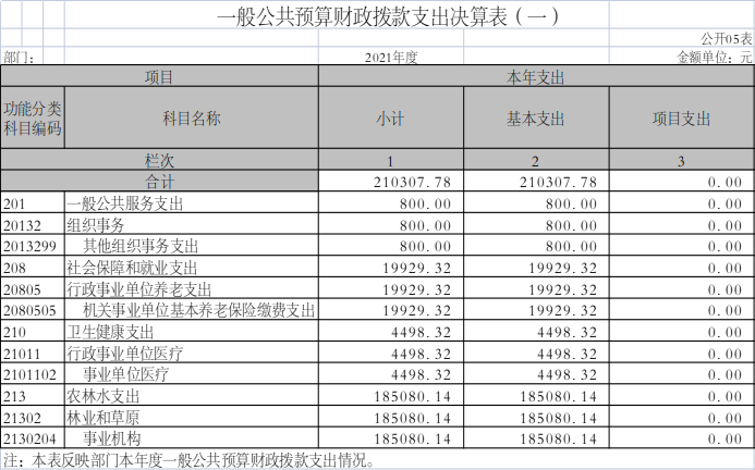 2021年度财政拨款支出年初预算21.030778万元,支出决算21.030778万元,完成年初预算的100%。其中: