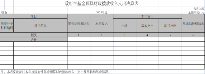 八、政府性基金预算财政拨款收入支出决算表