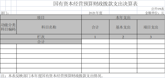 九、国有资本经营预算财政拨款支出决算表